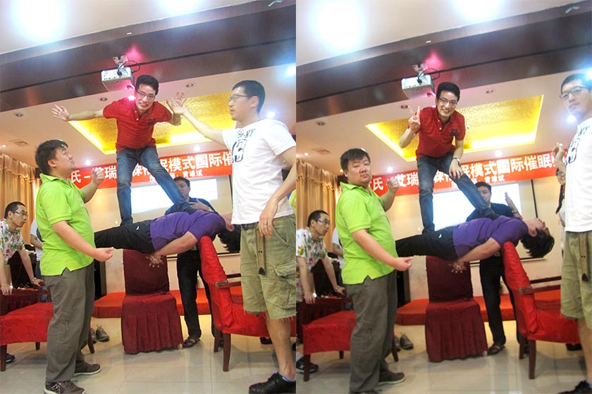 广东梁先生,一家心理医院的精神科主任医师,专职心理咨询师,从事心理事业多年,感觉心理咨询技术有所欠缺,碰到有些复杂的个案会束手无策!为了改变这种尴尬的局面,他于2013年10月1日--10月8参加了我们的《黄氏-艾瑞克森催眠模式国际三证班》。经过8天6夜的“黄氏-艾瑞克森催眠训练”,他的人生发生了脱胎换骨的蜕变;内心压抑多年的负面能量被一扫而空,心理能量大幅度提升,整个人变得自信满满,满载而归!同时,他也掌握了这套强大的“黄氏-艾瑞克森催眠疗法”,带回他的工作岗位,造福了很多个案。