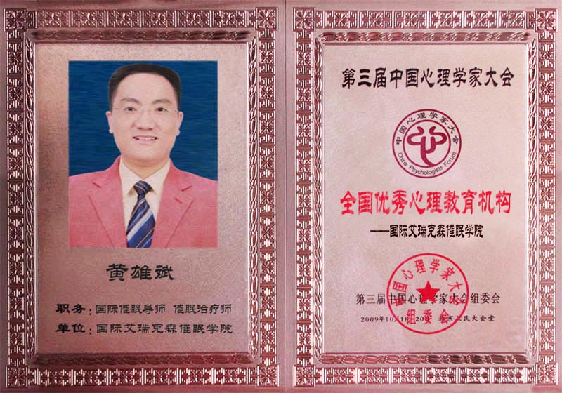 得奖既是一种肯定也是一种激励。黄老师与国际艾瑞克森催眠学院的同仁,将会不负众望、一如既往地在催眠、心理学方面继续自我完善,在经营管理方面不断规范,为广大求助者提供更多、更好、更高效的催眠治疗与心理援助服务,为推动中国催眠学、心理学的普及与传播而做出更多的努力,为推动中国催眠学、心理学事业的健康发展做出新的贡献!
