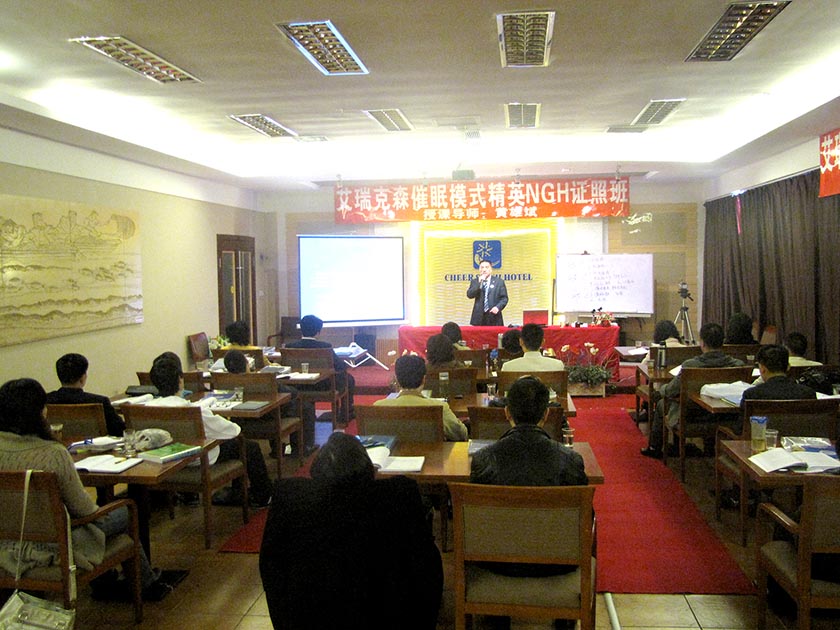 经过为期8天的训练(2009年4月5日——2009年4月12日),第09届“黄氏-艾瑞克森催眠模式国际证照班”圆满成功。参加本届培训班的精英,有来自上海、浙江、福建的,有来自四川、重庆、湖北的,也有来自河北、河南、山东、江西的,还有来自遥远的新疆、青海、辽宁、广东的朋友;有想要调整自身的问题与困惑的,也有想提升自己的催眠技术,以成为专业催眠治疗师的;有心理学硕士、职业心理咨询师,也有高级培训师;有道家居士,也有周易高手;有公司董事长、总裁,也有知名企业高层管理者、职业经理人;有医生、退伍军人,也有高校教师、健身教练。大家带着不同的目标而来,最终都满载而归!