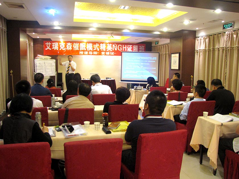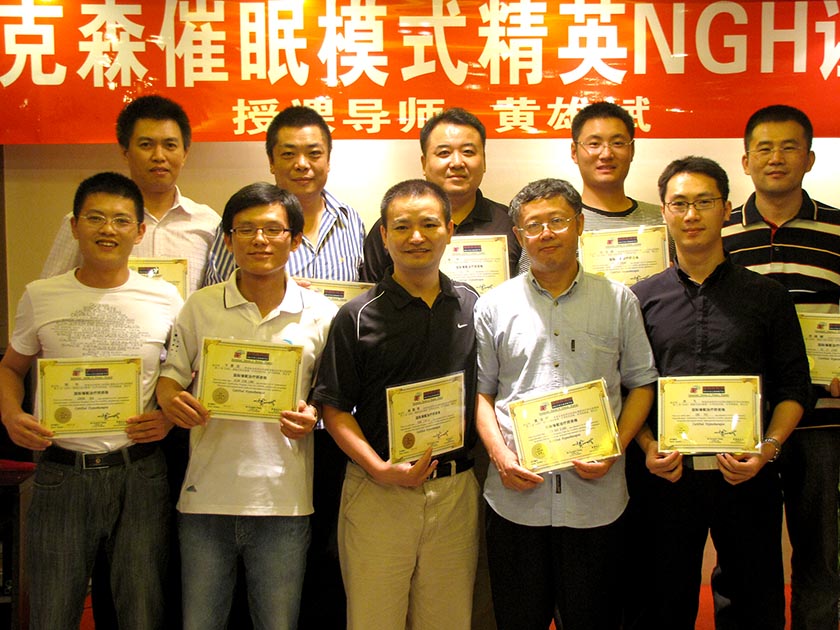 经过为期8天的训练(2009年9月28日——2009年10月5日),第11届“黄氏-艾瑞克森催眠模式国际证照班”圆满成功。参加本届培训班的精英,有来自上海、江苏、浙江的,有来自山东、河南、安徽的,也有来自贵州、天津的,还有来自遥远的泰国的朋友;有想要调整自身困惑的,也有想提升自己的催眠技术,以成为专业催眠治疗师的;有职业心理咨询师、也有职业高级培训师;有资深气功师,也有在佛教、道教领域有资深研究的居士;有近10位公司董事长、总裁,也有4位大学老师;有医生、作家,也有大学教授、心理学讲师。大家带着不同的目标而来,最后都满载而归!