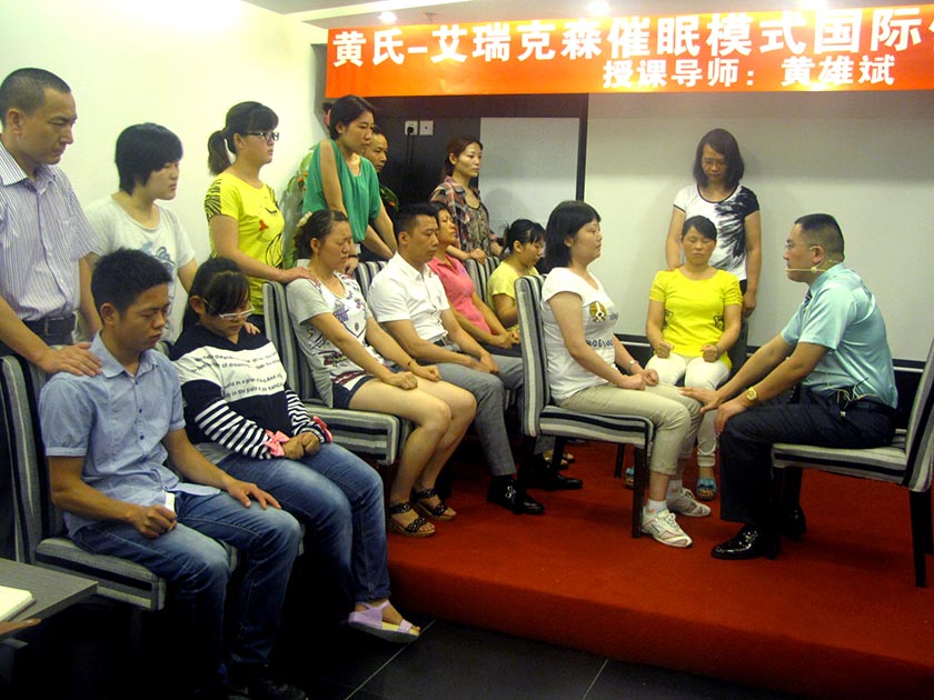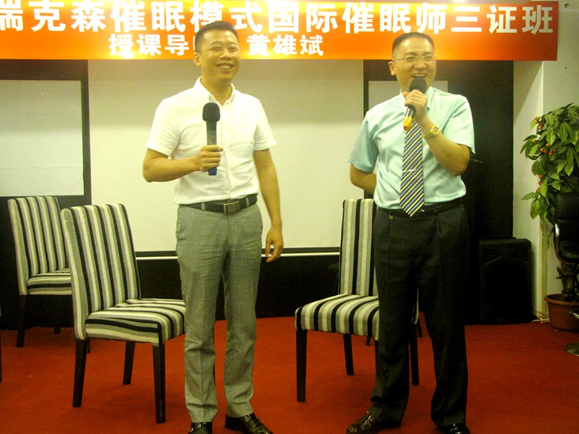 上海郑先生,乃是一位私营企业老板,原生家庭的冲突,导致他产生性格缺陷,内心压抑自卑,不接纳自我,产生了社交恐惧!为了改变这种痛苦的局面,他于2014年7月5日--7月12参加了我们的《黄氏-艾瑞克森催眠模式国际三证班》。经过8天6夜的“黄氏-艾瑞克森催眠训练”,他的人生发生了脱胎换骨的蜕变;经过催眠课堂现场的多次实战催眠治疗体验,他内心压抑多年的负面能量被一扫而空,彻底地接纳了自我,找回了久违的自信!几个社交恐惧、异性恐惧的同学一起突破后,在台上跳起了迈克尔杰克逊最性感的舞蹈!然后,现场让他站在台上演讲,台下的人拿臭鸡蛋扔他、哄他,都哄不下台,整个人变得自信爆棚,满载而归!