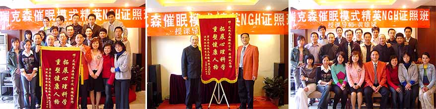 经过8天6夜的训练(2008年4月5日——4月12日),第05届“黄氏-艾瑞克森催眠模式精英NGH证照班”圆满成功。参加本届催眠课程的精英,有来自上海、浙江的,也有来自重庆、山东、山西、河北的,还有来自遥远的新疆、辽宁、广东、广西的,甚至还有从美国纽约赶来的朋友;有想治疗心理障碍的,也有想掌握艾瑞克森催眠技术,成为专业催眠治疗师的;有完全没有接触过催眠的,也有学过其他传统催眠课程的;有心理学硕士、国家注册心理咨询师,也有企业总裁和高层管理者;有职业培训师,也有国家公务员。大家学习目标不同,却都满载而归!